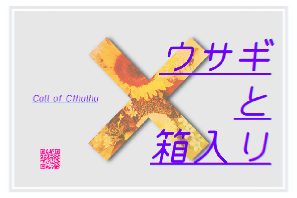 CoC非公式シナリオ「ウサギと箱入り」公開しました! シナリオ概要 傾向:RP重視、耽美形態:半クローズド周回可否:可能シナリオ季節:春ごろ時間:4~6時間程度人数:2PL固定秘匿HO有り(タイマン形 ...